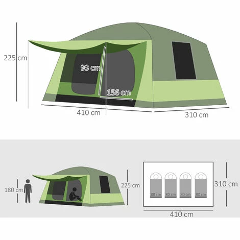 Give your outdoor day and night trips, camping, hiking, and more a spacious and protective place to stop, thanks to this 4-8 person lightweight tent from Outsunny. The design consists of two main sleeping areas and a large front porch. And this dome shelter is easy to unfold and extend this tent into a fully operational shelter! Included with a carrying bag and it’s lightweight for easy transportation. NOTE: This blackout tent is not suitable for use in extreme weather – do not use in heavy wind, rain, or snow.