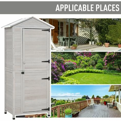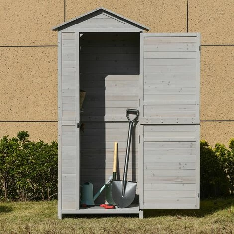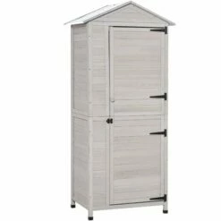 Keep clutter at bay with this small shed from Outsunny. Made from fir wood for a durable structure with a protective coat of paint for suitability outdoors, it features three shelves on the left for organised storage and an open right space to hold larger items with ease. The door comes with a magnetic latch to open and close easily and a lock for security. The roof, which is tilted, won’t build up water so it won’t fall through inside. A generously spacious storage shed which can stand in almost every garden space.