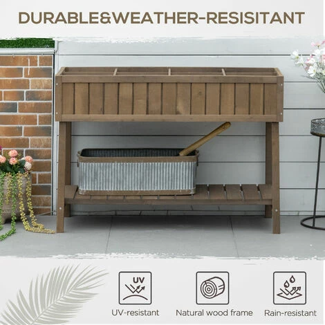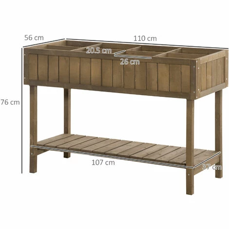 Give your flowers, plants and herbs their own pride of place with Outsunny raised beds for garden. Made from fir wood and covered with water-resistant paint all over to ensure it is suitable for use both indoors and outdoors. Eight separate cubes give you plenty of separate space to organize and display. Elevated legs are used for keeping away dirt, and the bottom shelf for keeping tools and equipment close to hand. The perfect place to show off your raised vegetable planter with pride!
