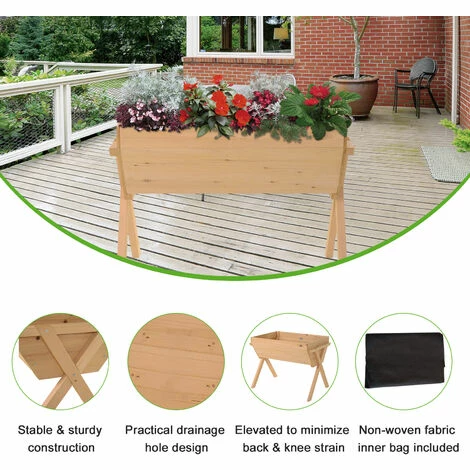 Fall in love with gardening all over again with this raised veg planter from Outsunny. Measuring a large 29 x 91cm, the planter is equipped with a UV and weather-resistant liner bag, ensuring it is easy to clean up, whilst allowing your plants to breathe to optimise growth. With a drainage hole on the bottom of the planter, the raised flower bed is finished with four cross-over legs, providing stable support for many seasons to come. A great addition to your garden, balcony, conservatory and patio.