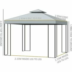 Outsunny 3 X 3m Garden Metal Gazebo Sun Shade Shelter Outdoor Party Tent