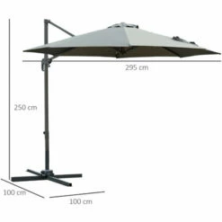 Outsunny 2.3m Garden Balcony Half Round Umbrella Metal Parasol Umbrella Grey