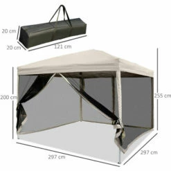 Outsunny 4 X 3(m) Patio Gazebo Garden Shelter W/ Curtains And Netting, Grey