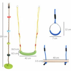 Outsunny Obstacle Course Kids Slackline W/ Rings Bars Fist Swing Climbing Rope